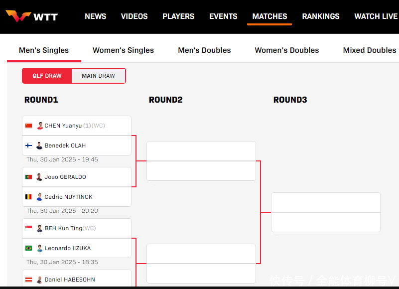 2025年WTT新加坡大满贯赛资历赛,是今年度的第一项迫切赛事,须眉单打方面,中国队派出王楚钦、林诗栋、陈垣宇、黄友政等球员参赛,目的即是赢回男单冠军,全国第一“大头”王楚钦是夺冠最大热点,而19岁的小将陈垣宇则期待再创佳绩。